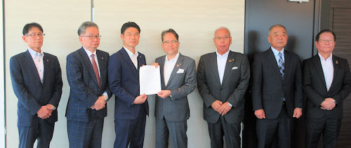 この要望書は、「販売商業」「生産工業」「建設」「サービス」「運輸車輛」の5部会から提起された問題・課題を協議・検討したもので市内中小企業の活性化を図り元気な地域とするよう求めたものです。