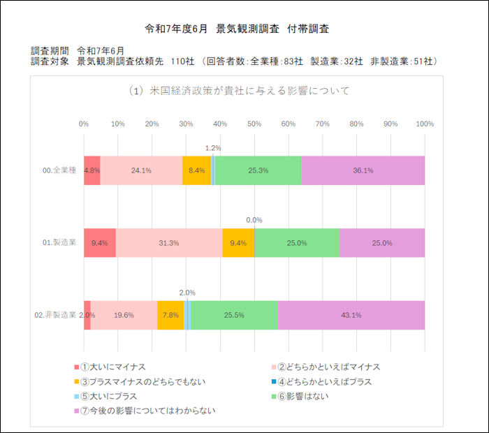 景気観測調査付帯調査「米国経済政策が貴社に与える影響について」